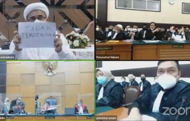 “Saya tetap minta dihadirkan dalam gedung pengadilan, ruang sidang,” sambung Habib Rizieq.