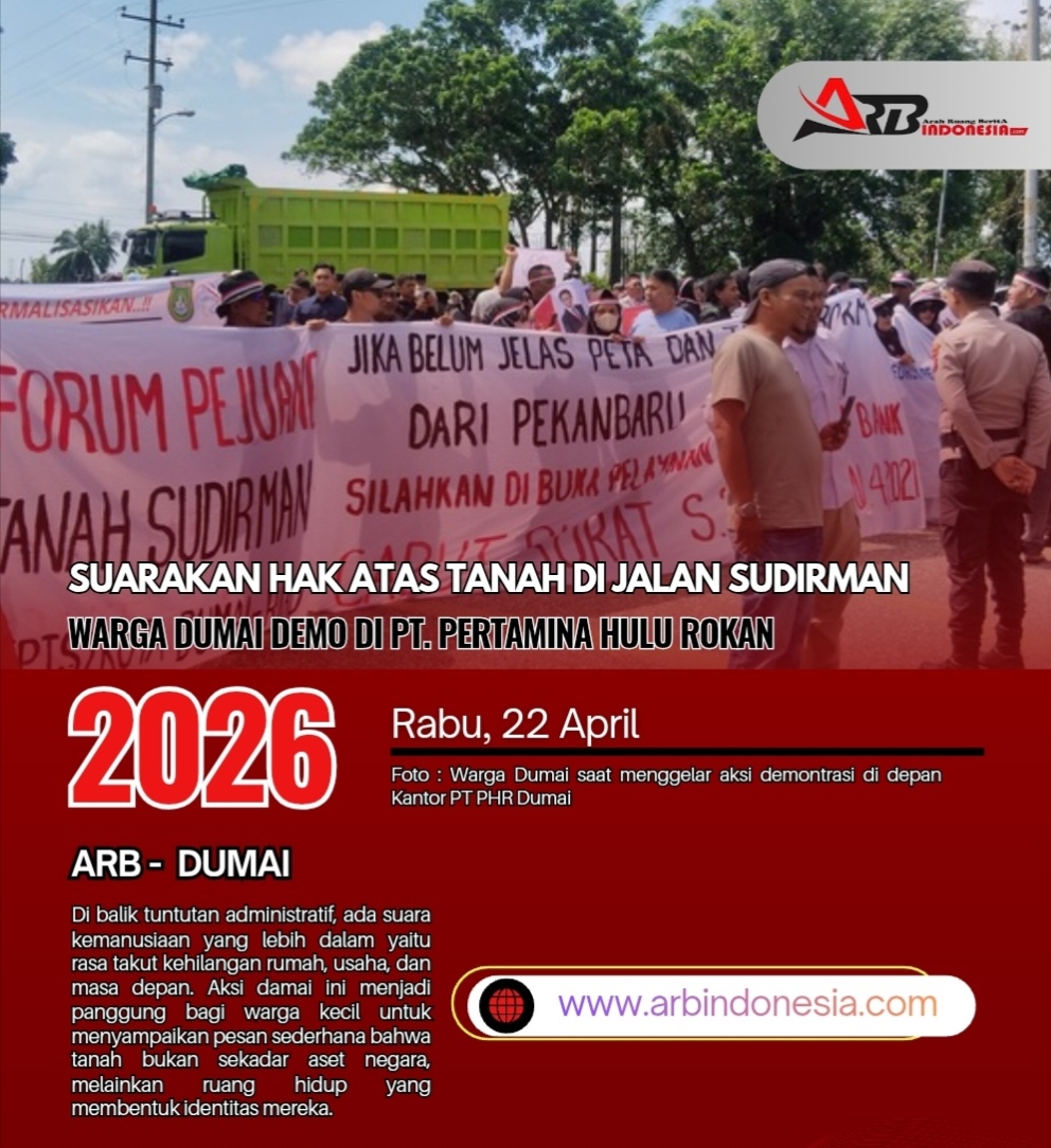 Untuk diketahui, konflik tanah di Jalan Jenderal Sudirman, Dumai, antara warga dan PT Pertamina Hulu Rokan (PHR) berakar dari klaim bahwa lahan sejauh 100 meter dari as jalan merupakan Barang Milik Negara (BMN).