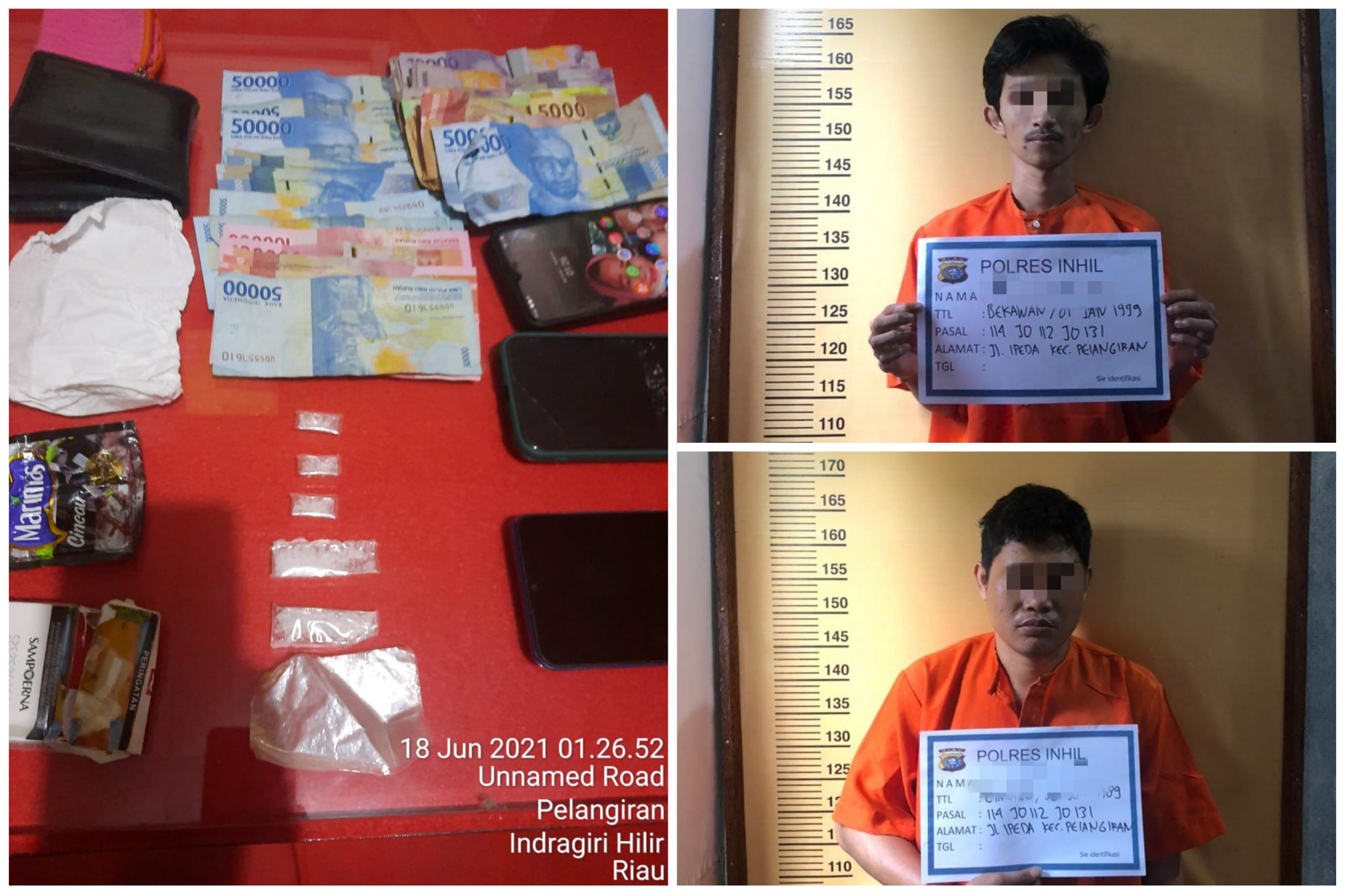 “Malam harinya, di pelabuhan pompong Desa Air Tawar, Kateman, Unit Reskrim Polsek Pelangiran juga mengamankan seorang laki-laki inisial DI (32) yang diduga pelaku narkotika,” tuturnya, Sabtu (19/6/2021).