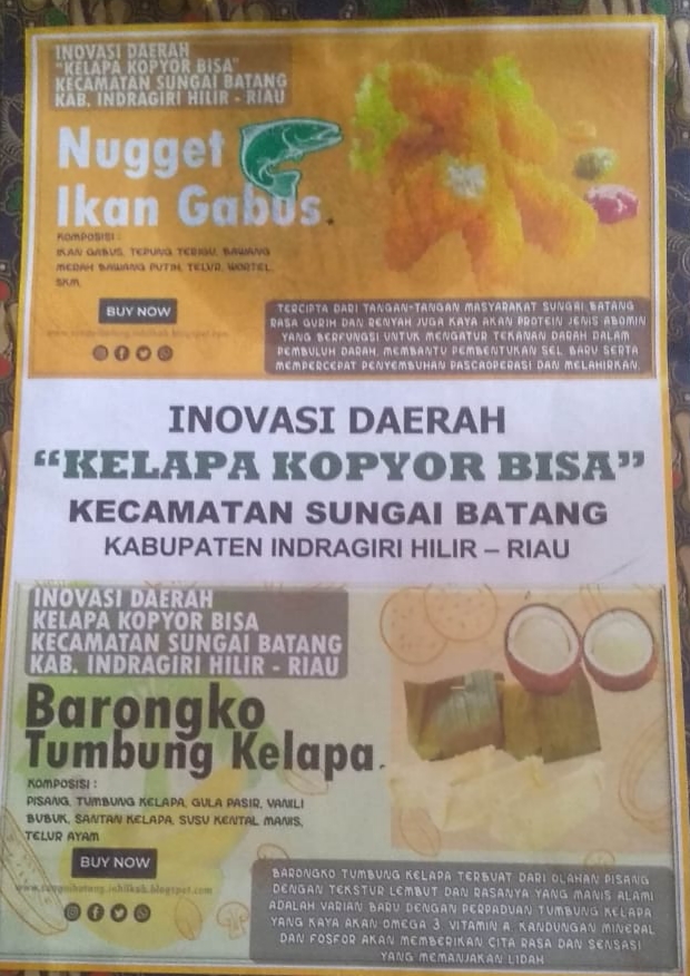 Seperti tumbung kelapa yang selama ini dianggap limbah akan diolah menjadi barongko tembung, selain itu jenis komoditas perikanan yang melimpah di Kecamatan Sungai Batang seperti Ikan gabus akan diolah menjadi Nuget Ikan Gabus.