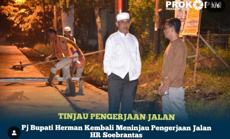 ARB INdonesia, INDRAGIRI HILIR – Setelah memantau pengerjaan peningkatan jalan HR Soebrantas beberapa waktu yang lalu, Pj Bupati, H Herman kembali melakukan peninjauan kelokasi pengerjaan jalan tersebut, Selasa, (16/07/2024) malam.