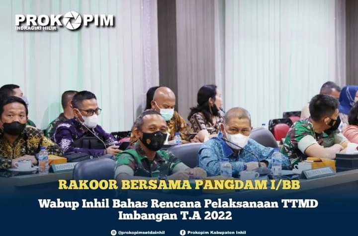 ARB INdonesia, MEDAN – Wakil Bupati Kabupaten Indragiri Hilir H.Syamsuddin Uti bersama Dandim 0314/Inhil Letkol ARH M. Nahruddin Roshid, S.E., M. Tr. (Han) menghadiri Rapat Koordinasi pelaksanaan TNI Manunggal Membangun Desa (TMMD) Ke-113 dan TMMD Imbangan T.A 2022 di Ruang Bina Yudha Lt.II Makodim 1/BB, Medan, Jum’at (1/3/2022) siang.