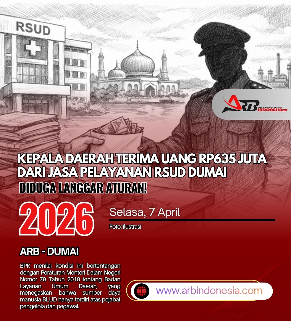 ARBindonesia.com, DUMAI — Badan Pemeriksa Keuangan (BPK) menemukan adanya kelebihan pembayaran jasa pelayanan di Rumah Sakit Umum Daerah (RSUD) Kota Dumai yang tidak sesuai dengan ketentuan pengelolaan Badan Layanan Umum Daerah (BLUD).